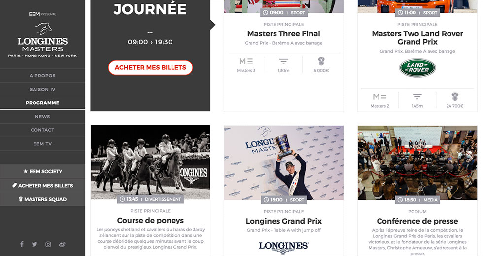 Après avoir accompagné la création de chaque évènement en créant des sites pour chacun d'entre eux, le client souhaitait mettre plus en lumière la marque Longines Masters.